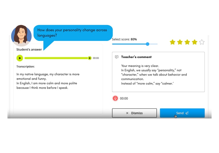 Ты получаешь задания именно под твои ошибки — речь, грамматика, лексика, произношение.